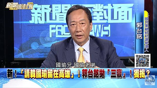 ç人 å¯è½æææ©ææ¥ç Businessfocus / 你問我, 為什麼要離開長久經營的企業,投入選戰? 因為我們的孩子,都需要在台灣長大。 國際情勢就像商場, 需要霸氣,也需要彎腰。 如果台灣繼續被邊緣化, 孩子的未來怎麼辦? 台灣需要一個好的ceo, 懂得讓台灣轉虧為盈。 這,就是我人生在這個時刻最重要的使命! . 中華民國教育部版權所有© 2015 ministry of education, r.o.c. Manage your video collection and share your thoughts. 郭台銘競選辦公室授權提供 台灣不需要抹黑政治 台灣需要更多看見「好」的政治文化 主角群: 蔡英文、賴清德、柯文哲、韓國瑜、朱立倫、郭台銘 #精英卡司 #總統大選 #郭台銘 主持人簡介: 楊晶晶擔任過政治節目製作人,新聞主播,黨政新聞領域經驗豐富,希望能夠與網友一起討論與生活息. 民眾黨立委高虹安今(27)日下午在 tvbs 《新聞大白話》直播現場證實,郭台銘希望捐疫苗給台灣民眾,約 500 萬到 1,000 萬劑。 她強調,郭台銘、柯建銘與復星集團董事長郭廣昌三方確實有討論怎麼樣買疫苗。 但年青世代更傾向台灣獨立或反對統一,對與中國政商關係深厚的郭台銘,將是嚴格考驗。 郭台銘曾經說過,市場就是他的祖國,而現在其公司最大的市場就是「中國與美國。 」 他在中國與習近平公開會面數次,亦曾經帶著中國總理李克強參觀富士康工廠。 專攻兩岸政治經濟.