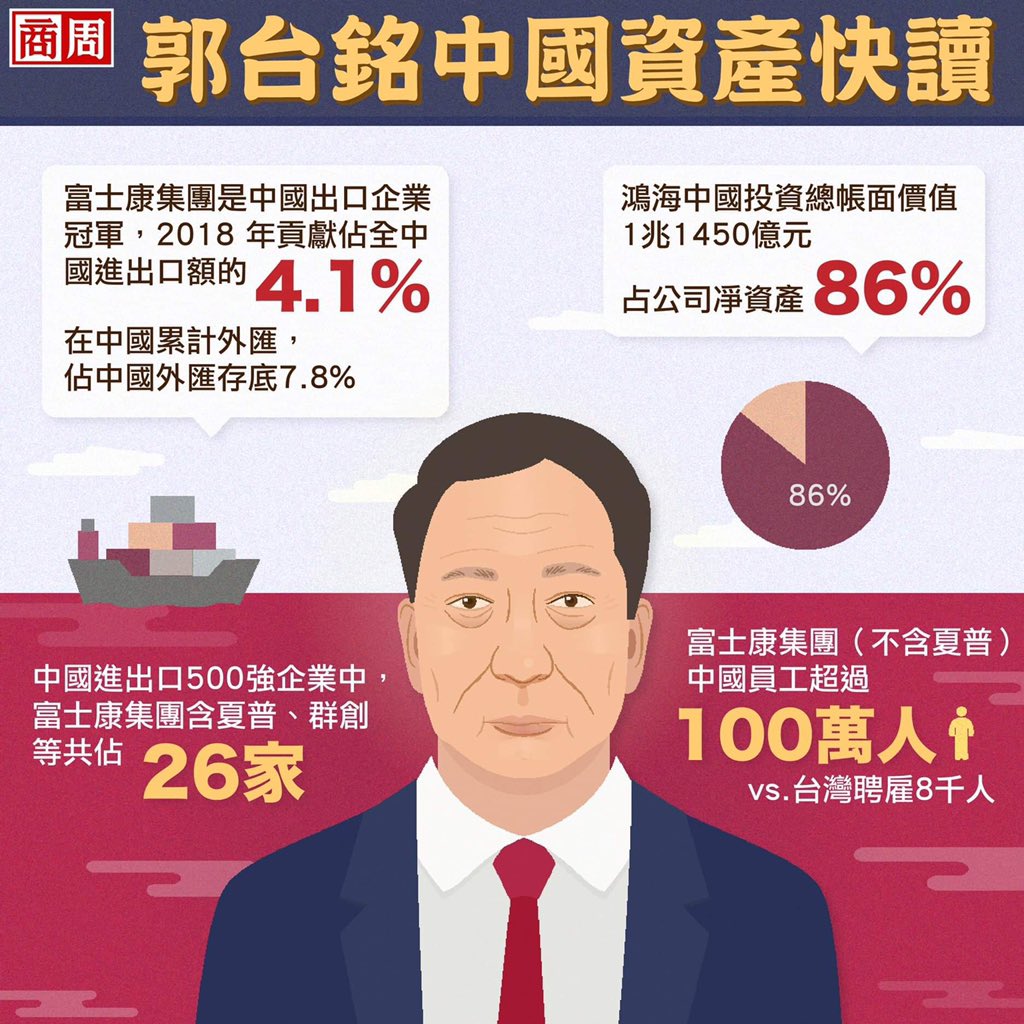Source: media.businesstimes.com.hk 但年青世代更傾向台灣獨立或反對統一,對與中國政商關係深厚的郭台銘,將是嚴格考驗。 郭台銘曾經說過,市場就是他的祖國,而現在其公司最大的市場就是「中國與美國。 」 他在中國與習近平公開會面數次,亦曾經帶著中國總理李克強參觀富士康工廠。 專攻兩岸政治經濟.