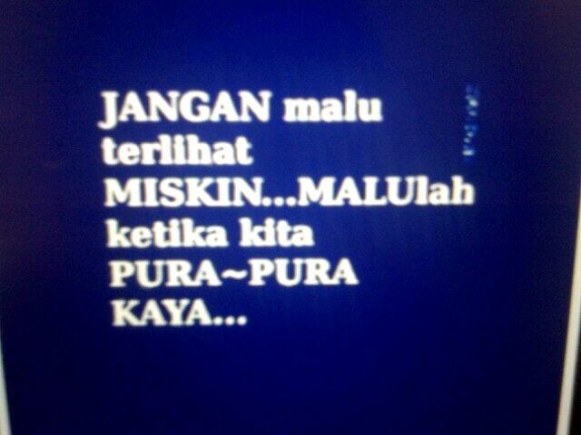 Jangan malu terlihat miskin tp malulah di saat km purak purak kaya. We did not find results for: Check spelling or type a new query. Maybe you would like to learn more about one of these?